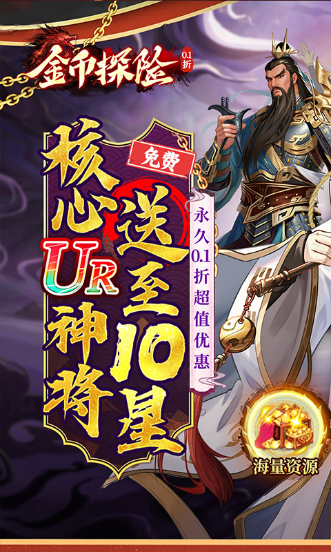 0.1 折爽玩三国放置卡牌!游戏主打轻松护肝的放置玩法,离线也能自动刷怪拿资源,碎片时间就能养成满星神将;独创「武将链接」机制,无需重复抽卡,新武将直接继承已有 UR + 武将的星级与属性,零成本毕业核心阵容。首充仅需 0.1 元,不肝不氪也能凑齐神魔国家队,在乱世三国中轻松称霸! 《金币探险_三国0.1折送满星神将_混服》