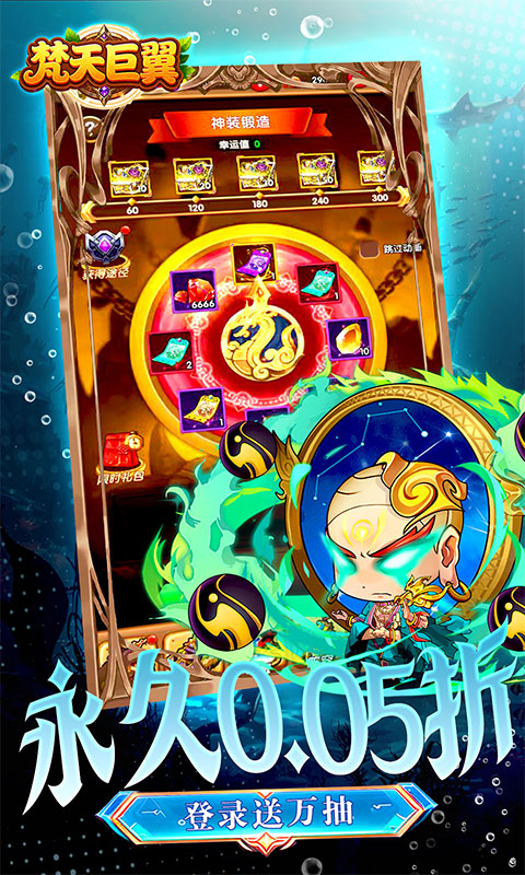 这是一款Q版国风题材的卡牌+塔防回合制游戏。你将化身主公,带领英雄们征战天下!烧脑策略秀操作,每个武将也都各具特色,趣味的玩法,休闲的画风,简单的操作,原创“满屏技能释放”,带来燃尽十足的战斗快感,每日福利拉满,永久0.05折,天天送10000代金券,让战斗在你的指尖生动重现。 《梵天巨翼_0.05折日送10000_混服》